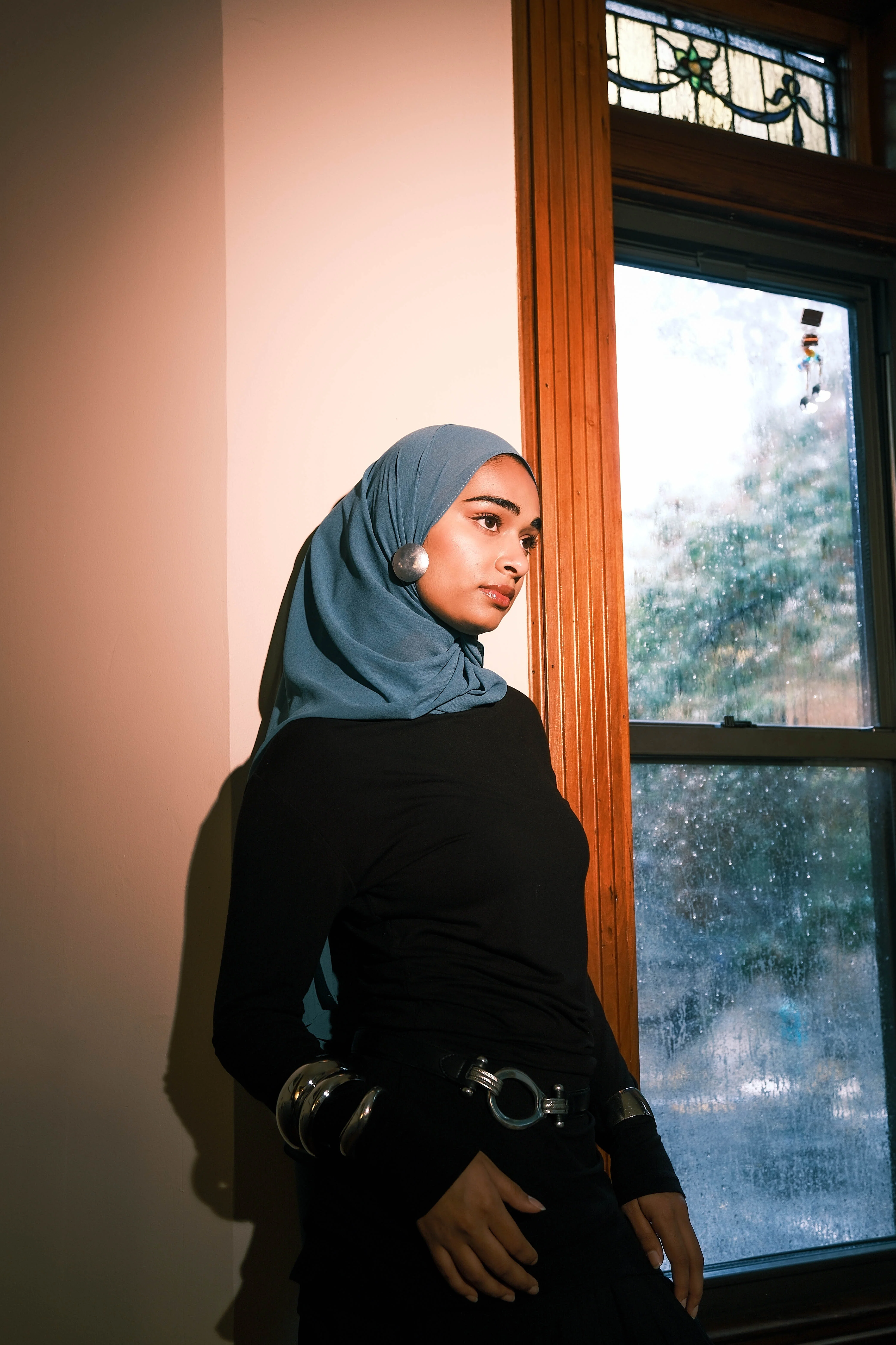 Mia is a US 0 and wears a size XS in our Asymmetrical Long Sleeve Top in Black.Â