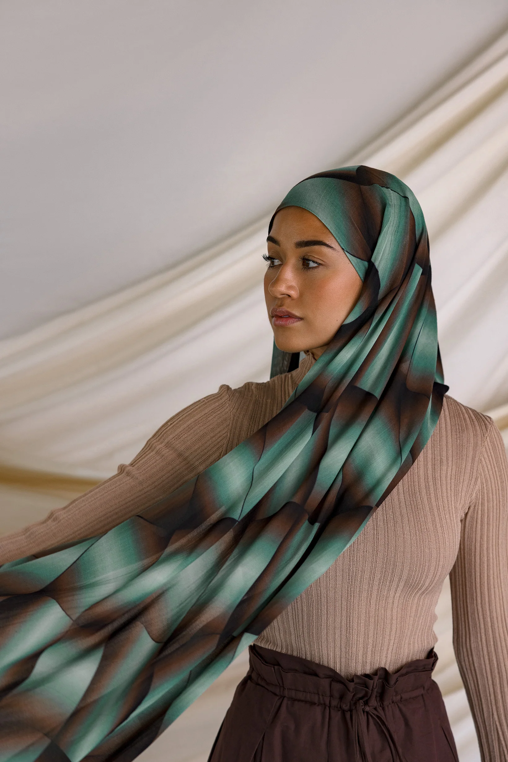 Step into the serene beauty of nature with the Aurora Grid hijab. This modal scarf features an ombre grid design that gracefully transitions from deep greens to warm browns, evoking tranquil hues reminiscent of the Northern Lights. Perfect for those who appreciate a subtle yet striking look, Aurora Grid brings a unique, nature-inspired twist to your everyday style. Shop the Aurora Grid hijab online to add this stunning scarf hijab to your collection.