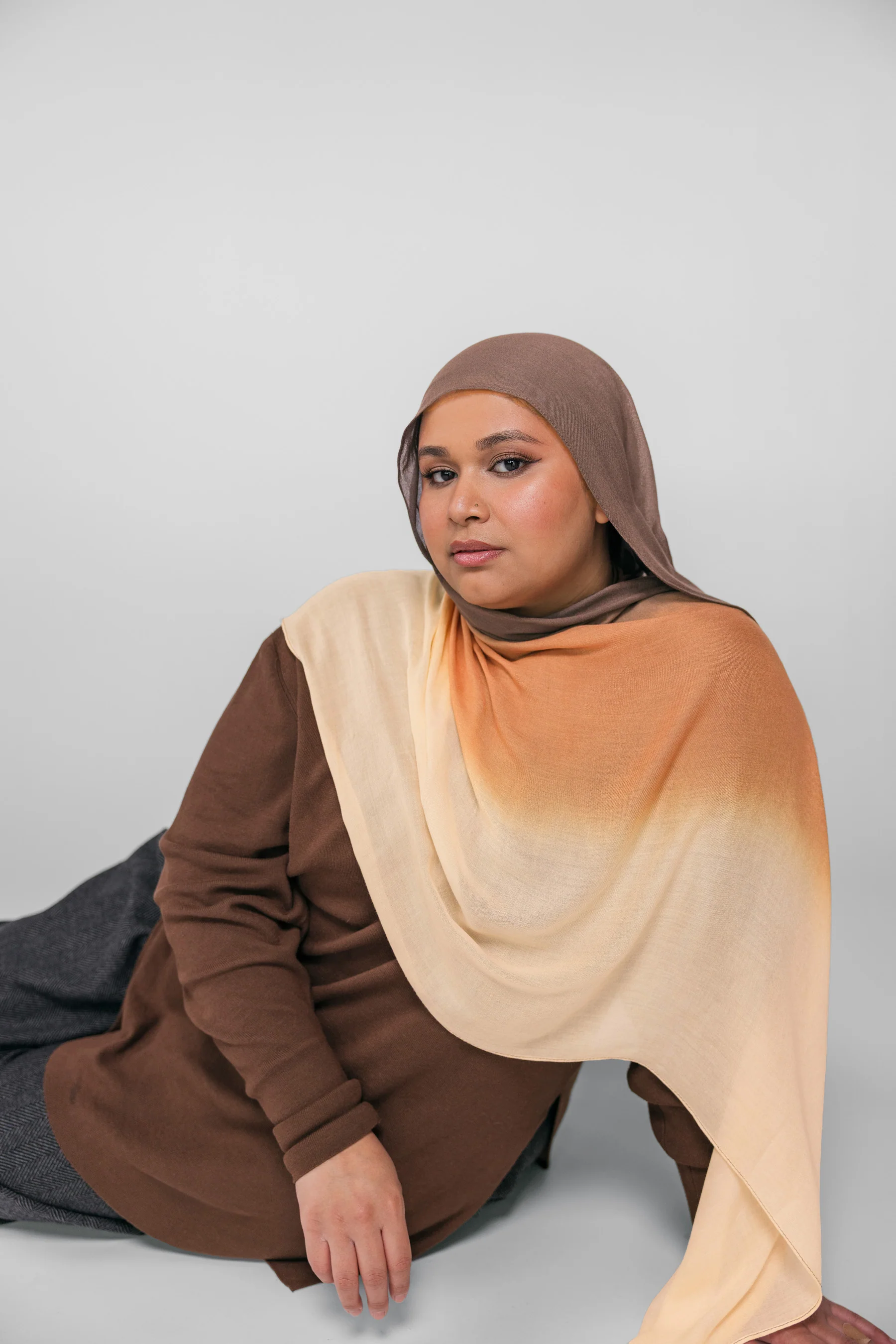 Crafted in our signature modal fabric, Ombre Dusk features a seamless fade from warm beige into rich rust and brown tones. The dual-tone gradient offers two looks in one: wear it light for subtle softness or flip it for deeper warmth and contrast. Hand-dyed in small batches, no two scarves are exactly alike. Natural variations in shade, color and finish reflect the artistry behind each piece and enhance its individuality.Â
