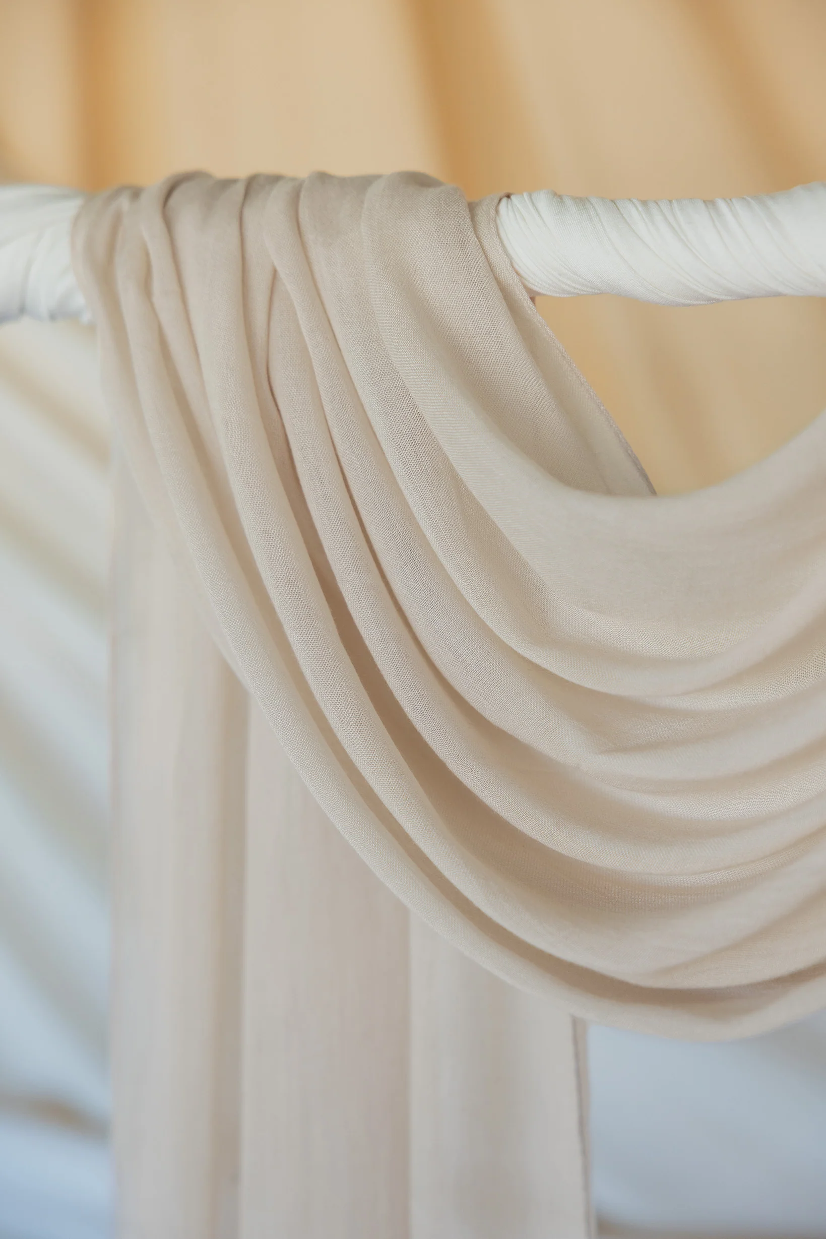 Elevate your style with the warmth of our woven Spice Vanilla hijab, meticulously crafted to infuse elegance into every look and exuding a deliciously neutral hue with warm beige undertones.